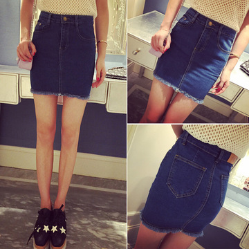 韓范復古高腰顯瘦包臀A字牛仔短裙韓版學院風純色半身裙女潮 /