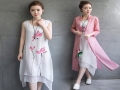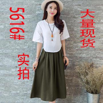 夏裝新款女裝棉麻連衣裙短袖寬松大碼顯瘦兩件套裝裙子(實拍現(xiàn)貨) /