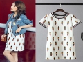 2016春夏李小璐同款小熊印花百搭套頭寬松連衣裙休閑中長款T恤 /