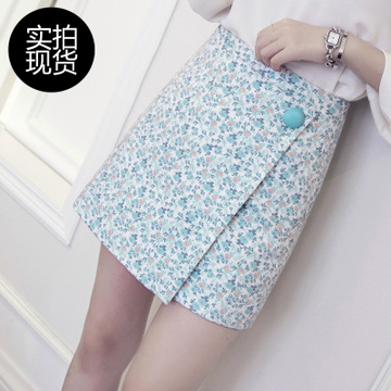 2016春夏新款女裝韓版一粒扣小清新碎花A字半身包臀裙 /