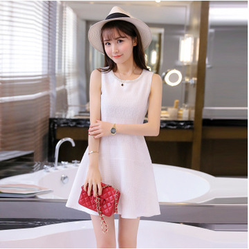 2016夏季新品無袖連衣裙女修身顯瘦氣質(zhì)款優(yōu)雅百搭手工釘珠裙子 /