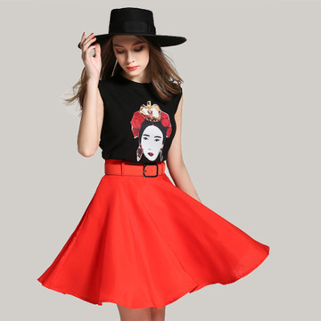 歐洲站 2016夏季太陽花珠片繡花上衣+大擺網(wǎng)紗短裙兩件套連衣裙 /