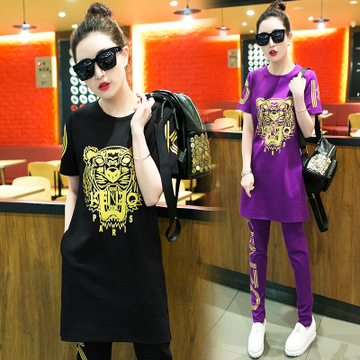實拍2016春夏新款半袖運動休閑套裝女老虎印花時尚潮韓版女裝 /