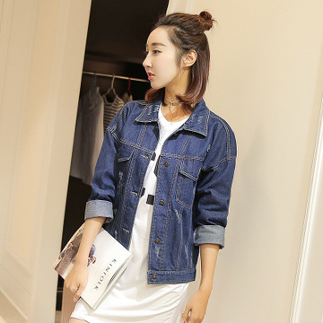 牛仔外套女2016春裝新款韓版立領(lǐng)長袖寬松牛仔衣夾克外套 /