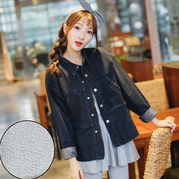 BF風(fēng)寬松做舊牛仔加絨外套韓版學(xué)院風(fēng)長(zhǎng)袖上衣女裝批發(fā)一件代發(fā) /