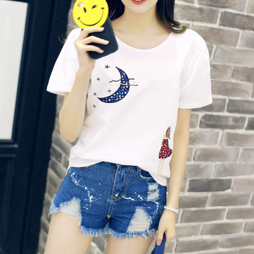 實(shí)拍 原創(chuàng)仿亞麻棉麻T袖刺繡春夏女裝短袖上衣寬松大碼 /