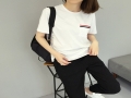 韓范潮流圓領(lǐng)口袋條紋貼布鈕扣寬松百搭顯瘦短袖T恤女 /