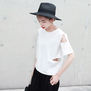 2016夏季韓版寬松短袖t恤衫打底衫破洞拼接上衣潮 /