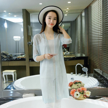大貨新款防曬衫空調(diào)衫女裝中長(zhǎng)款針織衫韓版開(kāi)衫薄外套連衣裙 /