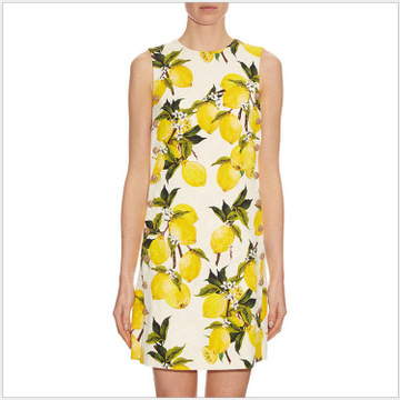 2016春夏新款明星劉詩(shī)詩(shī)同款背心檸檬黃色印花無(wú)袖連衣裙 /