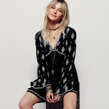 2016春季新款女裝波西米亞度假系列鉆石刺繡連衣裙 /