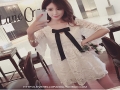 夏季新款歐美蕾絲刺繡鏤空蝴蝶結(jié)五分袖連衣裙女 /