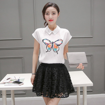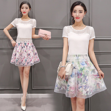 554#【實(shí)拍】2016夏裝新款重工刺繡拼接上衣+印花短裙套裝裙韓版 /