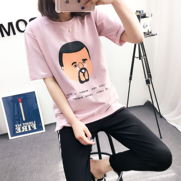 女裝t恤2016新款韓版人頭女式圓領(lǐng)t恤休閑女上衣時(shí)尚打底衫批發(fā) /