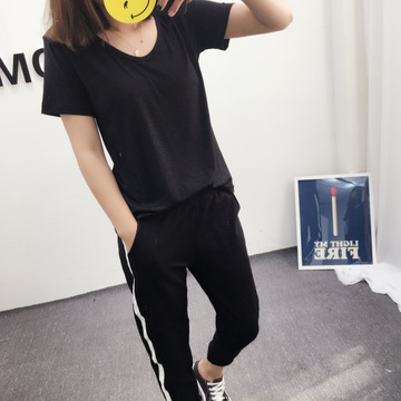2016新款純色淺V領(lǐng)女式短袖t恤純棉凈版半袖彈力修身體恤批發(fā) /