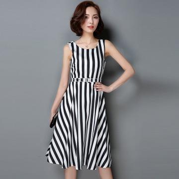 2016夏季新款高端氣質(zhì)條紋修身顯瘦連衣裙 /