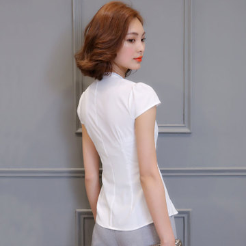 2016春韓范新款蝴蝶結(jié)立領(lǐng)襯衫OL短袖打底衫修身雪紡襯衣女 /