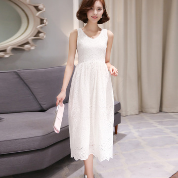 2016夏裝新品歐美街頭精品刺繡鑲鉆大擺中長款背心裙女 /