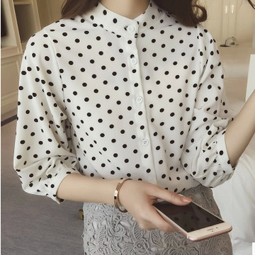 2016春裝新款韓版寬松波點(diǎn)印花七分袖圓領(lǐng)襯衣襯衫女 /