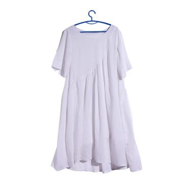2016夏裝新款文藝簡約連衣裙 原創(chuàng)森女系圓領純色中長裙 /