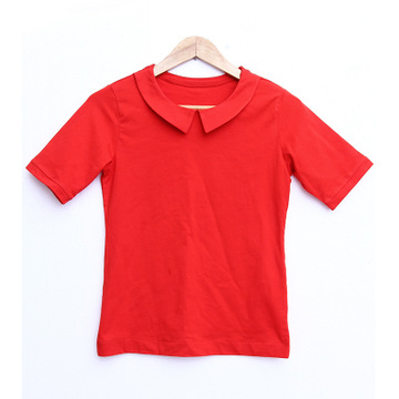 2016夏新款復古文藝純棉t恤 純色翻領短袖T恤女 /