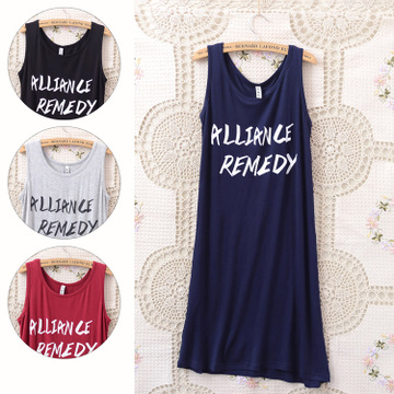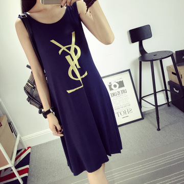 廠家直銷女裝莫代爾中長(zhǎng)款女士字母印花中長(zhǎng)款連衣裙批發(fā) /
