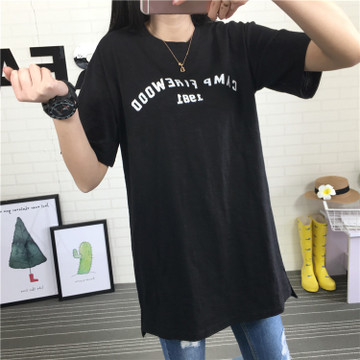 奧戴爾字母印花寬松中長(zhǎng)款T恤女短袖學(xué)生衛(wèi)衣潮純色打底衫批發(fā) /