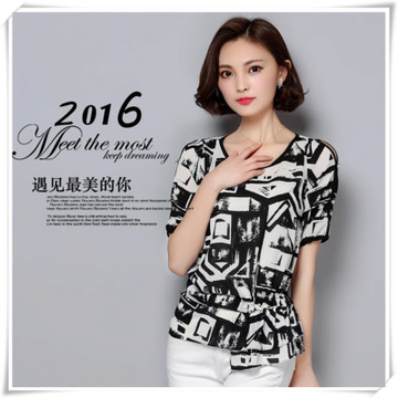 2016夏裝新款短袖雪紡衫女裝 修身中長款大碼韓版夏季歐根紗上衣 /
