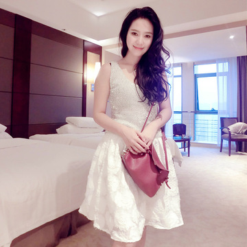 劉美人同款夏季新款白色大繡花無袖背心裙刺繡吊帶連衣裙中長裙批 /