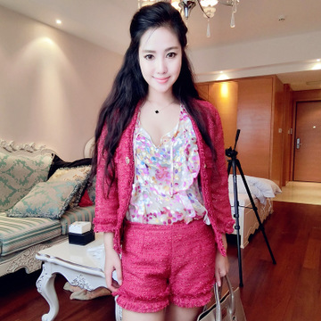 劉美人2016春季新款燙金打底褲百搭修身加厚夾棉毛呢短褲女褲批發(fā) /