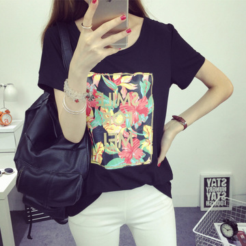 2016夏季女士裝修身純棉短袖女印花百搭打底衫t恤潮一件代發(fā) /