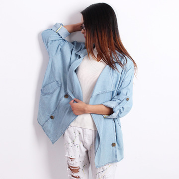 批發(fā)定制新款藍(lán)色外套女長(zhǎng)袖純棉外套時(shí)尚女裝熱賣批發(fā)量大從優(yōu) /