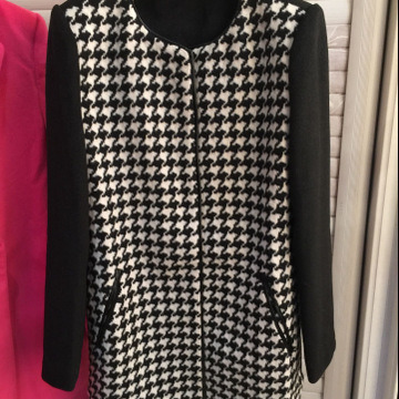 呆呆家2016新款鳥(niǎo)家圓領(lǐng)拼接拉鏈千鳥(niǎo)格毛呢大衣超值特價(jià) /