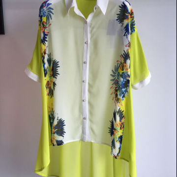 呆呆家2016鳥(niǎo)家原單長(zhǎng)后擺短袖印花雪紡襯衫面料柔軟透氣 /