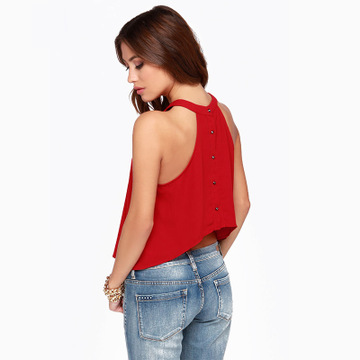 2016亞馬遜ebay熱賣 高端無(wú)袖背心后背門襟鉚釘女士外貿(mào)雪紡衫 /
