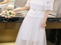新款韓版荷葉邊蕾絲拼網(wǎng)紗女短袖收腰顯瘦連衣裙長裙 /