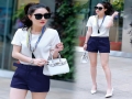 女夏兩件套2016夏季女裝休閑顯瘦短袖雪紡上衣短褲小香風(fēng)套裝 /