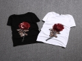 歐洲站2016夏款女裝上衣 亮片立體花朵貼布套頭短袖棉T恤16042303 /