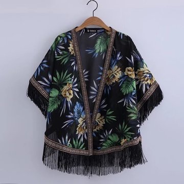 外貿(mào)原單牛貨!精品民族風(fēng)刺繡流蘇雪紡斗篷披肩開衫蝙蝠袖防曬衫 /