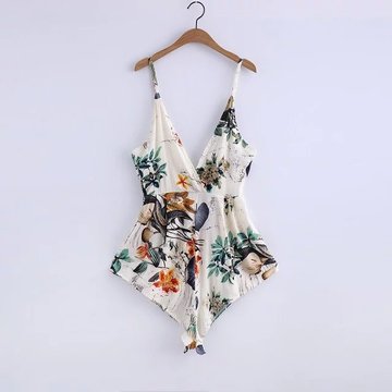 歐美外貿(mào)原單!復(fù)古花卉吊帶連體短褲闊腿褲熱褲V領(lǐng)露背連體褲裙 /