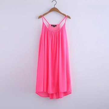 外貿(mào)原單歐美風(fēng)中長(zhǎng)款熒光色雪紡鏤空吊帶度假連衣裙寬松雪紡裙女 /