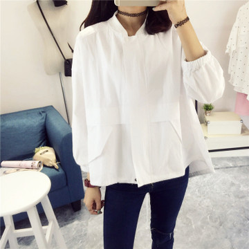 2016春夏新款韓版復(fù)古立領(lǐng)寬松透氣翻領(lǐng)五分袖白色短款防曬外套 /