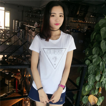 2016夏裝歐美單倒三角立體浮雕字母圓領(lǐng)短袖簡(jiǎn)約修身百搭T恤 女T /