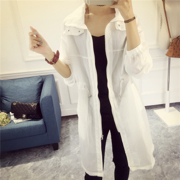 2016韓國(guó)夏裝中長(zhǎng)款風(fēng)衣外套韓版寬松顯瘦女裝防曬衣 薄款外套 /