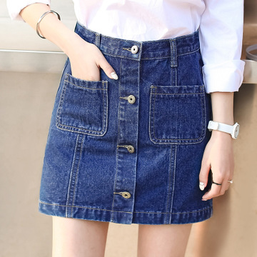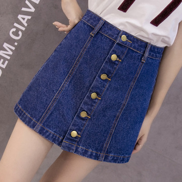 D實拍2016韓版牛仔裙a字裙包臀單排扣修身半身裙牛仔短裙 /