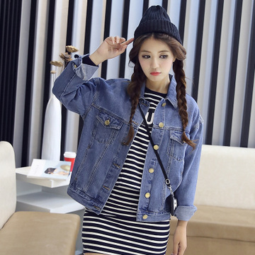 2016春季新款韓國寬松顯瘦復古洗水純棉純色牛仔上衣外套女 /