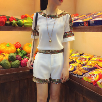 勞麗詩(shī)女裝2016韓版夏季新款潮流女裝修身短袖雪紡上衣+短褲時(shí)尚兩件套 /
