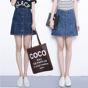 實(shí)拍學(xué)院風(fēng)雙口袋閨蜜裝A字包臀牛仔短裙半身裙 /