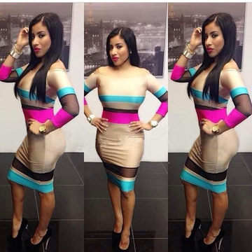 【特價(jià)清倉(cāng)】 新款爆款彩色拼紗性感連衣裙 歐美時(shí)尚優(yōu)雅夜店裙 /