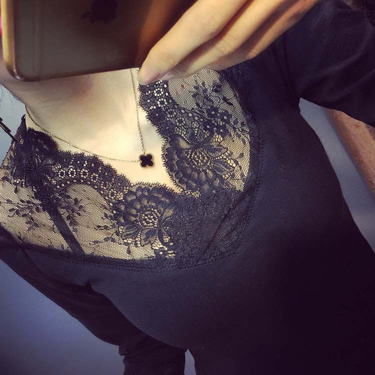 2015秋冬加絨加厚蕾絲顯瘦時尚針織衫女士毛衣修身打底衫線衣小衫 /